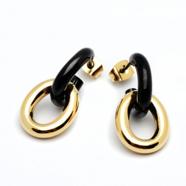 Kolczyki Czarny ze Złotym ze Stali Szlachetnej