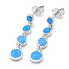 Srebrne Kolczyki Kółka z Niebieskim Opalem