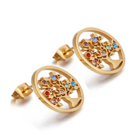 Złote Kolczyki Drzewko Szczęścia Stali Szlachetnej
