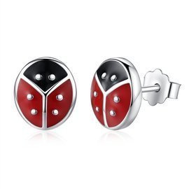 Srebrne Kolczyki Czerwona Biedronka