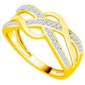 Złoty Pierścionek z Brylantami Przeplatany