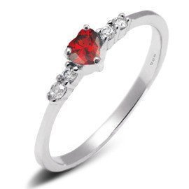 Srebrny Pierścionek Serce z Czerwoną Cyrkonią