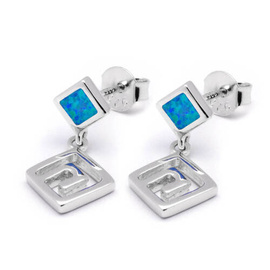 Srebrny Pierścionek Kwiatuszek z Niebieskim Opalem