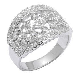 Pierścionek Srebrny Wysadzany Białymi Cyrkoniami