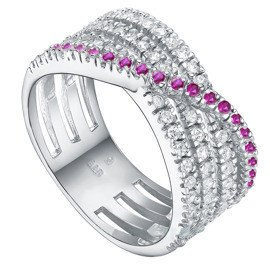 Pierścionek Srebrny Różowa i Białe Cyrkonie