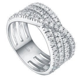 Szeroki Srebrny Pierścionek z Białymi Cyrkoniami