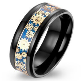 Czarna Obrączka ze Stali Szlachetnej z Aplikacją