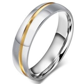 Obrączka ze Stali Szlachetnej ze Złotym Paskiem