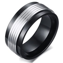 Czarna Obrączka z Wolframu ze Złotymi Paskami