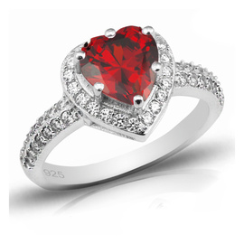 Srebrny Pierścionek Czerwone Serce z Cyrkoniami