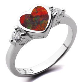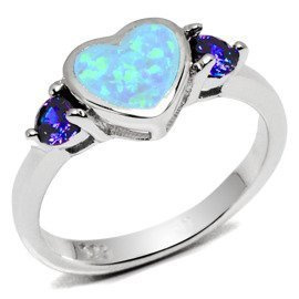 Srebrny Pierścionek Serce z Opalem i Cyrkonią