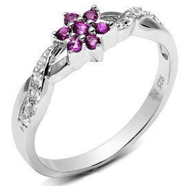 Pierścionek Srebrny Kwiat z Rubinowymi Cyrkoniami