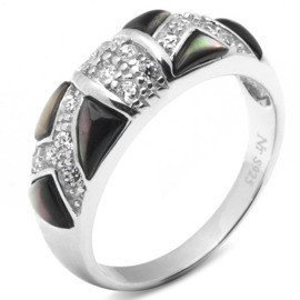 Obrączka Srebrna Serce z Czarną Masą Perłową