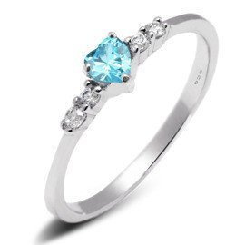 Srebrny Pierścionek Serce z Błękitną Cyrkonią