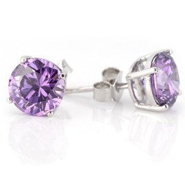 Srebrne Kolczyki z Ametystowymi Cyrkoniami 5mm