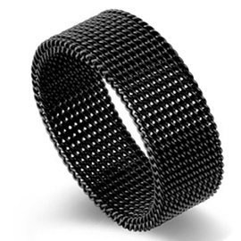 Czarny Pierścionek Siatka ze Stali Szlachetnej