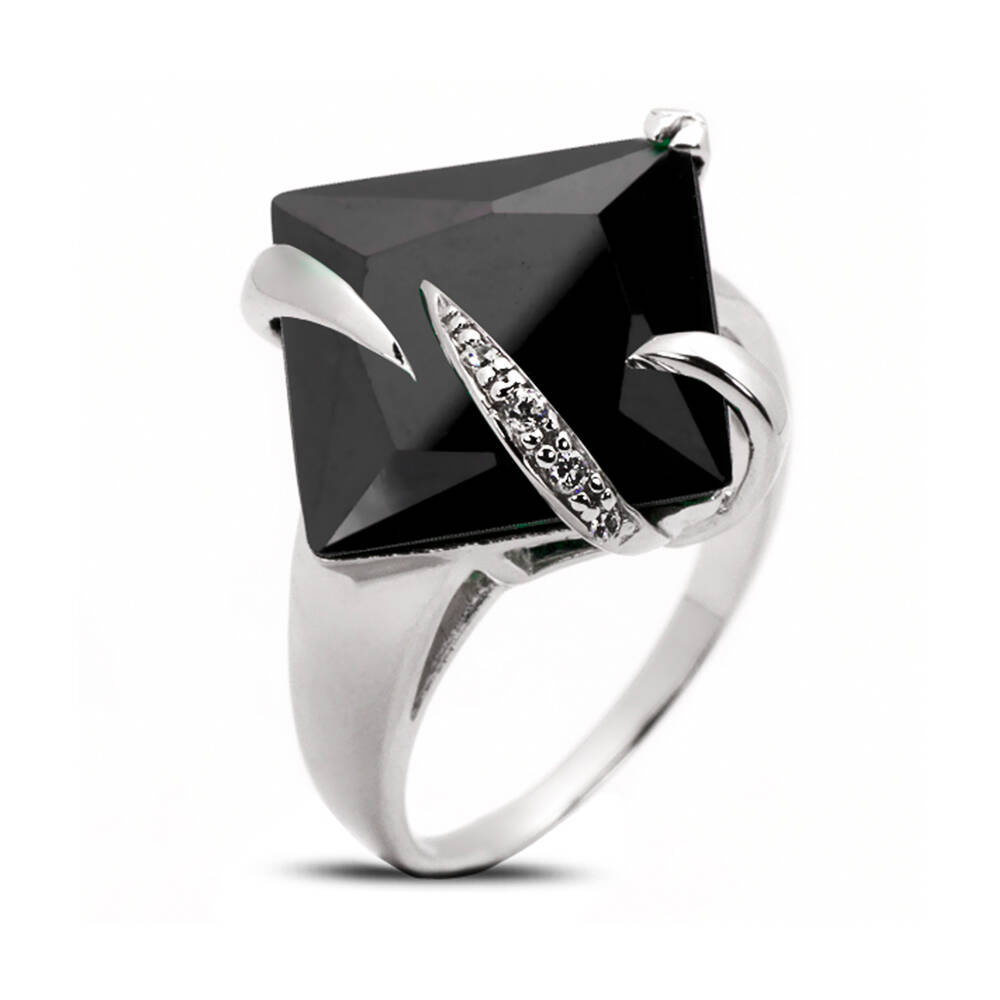 Pierścionek Srebrny z Dużą Czarną Cyrkonią