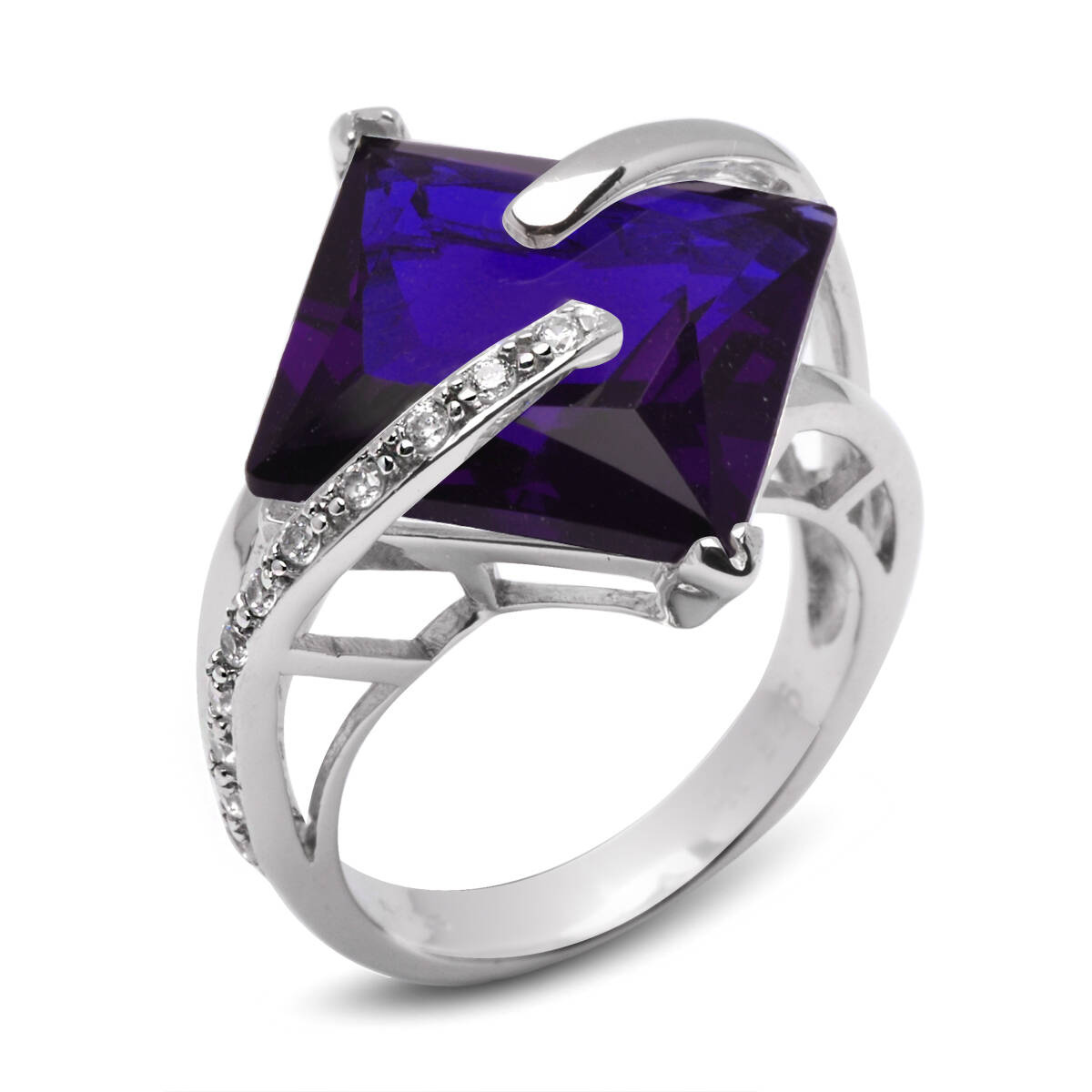 Pierścionek Srebrny z Dużą Szafirową Cyrkonią