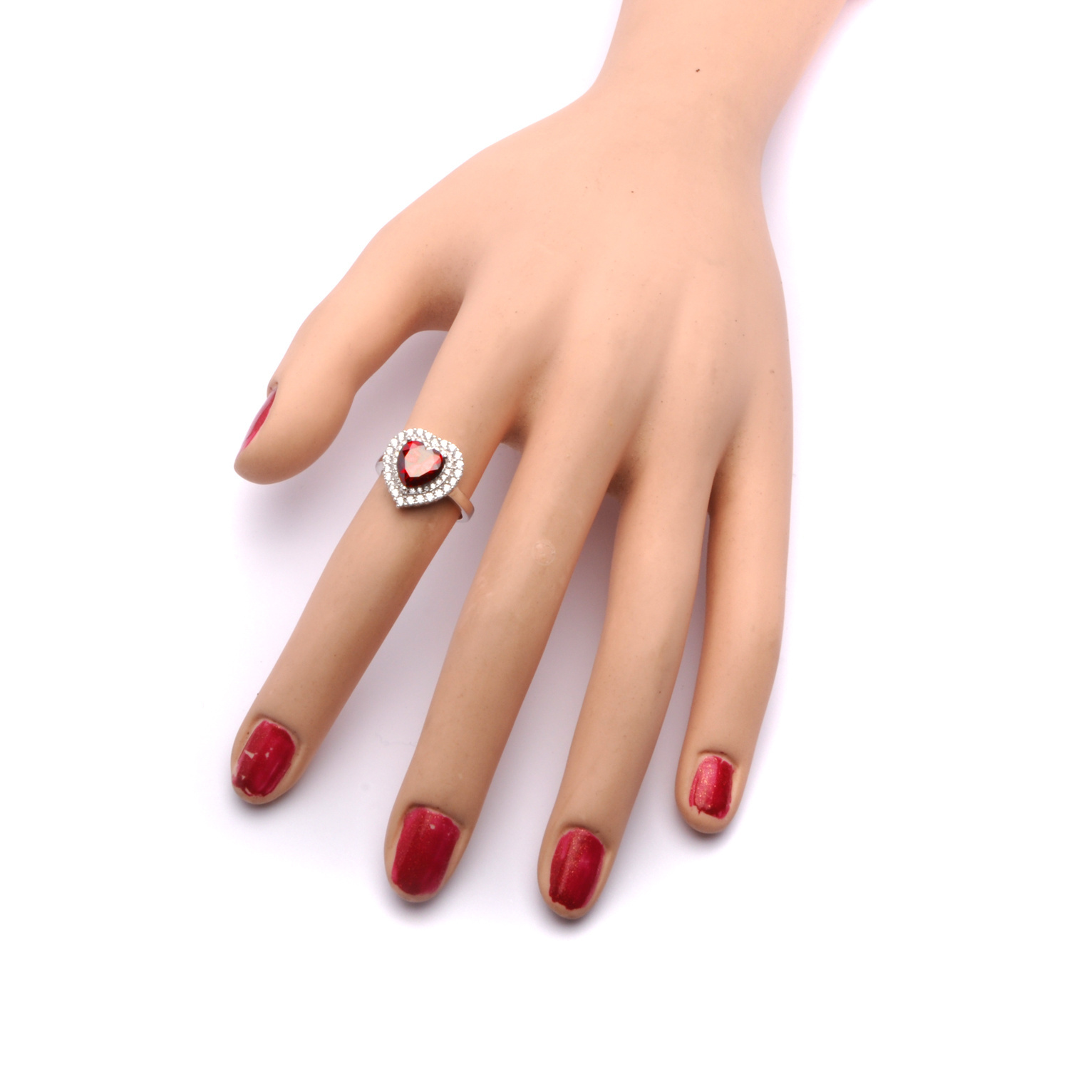Pierścionek Srebrny Wysadzany Czerwonym Sercem