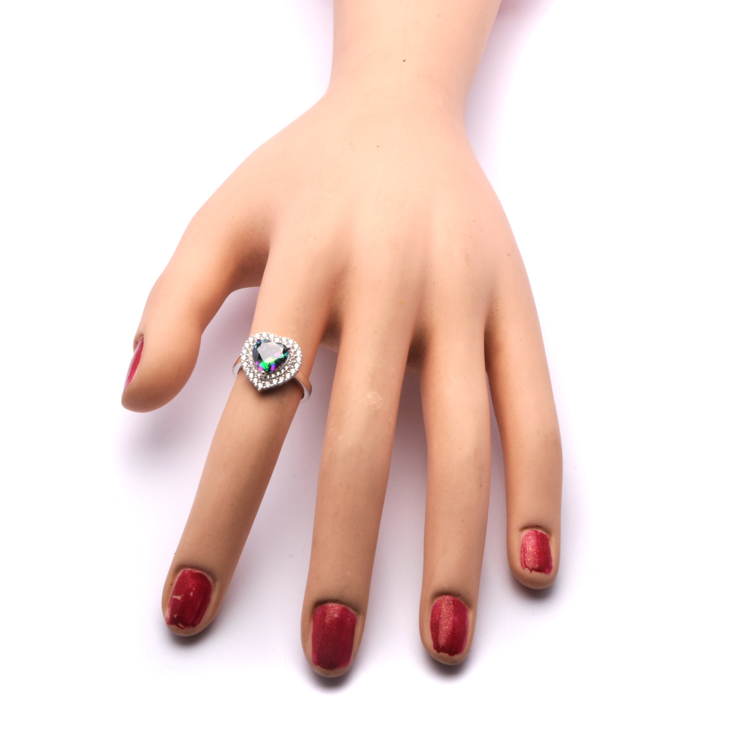 Pierścionek Srebrny Wysadzany Sercem Multikolor