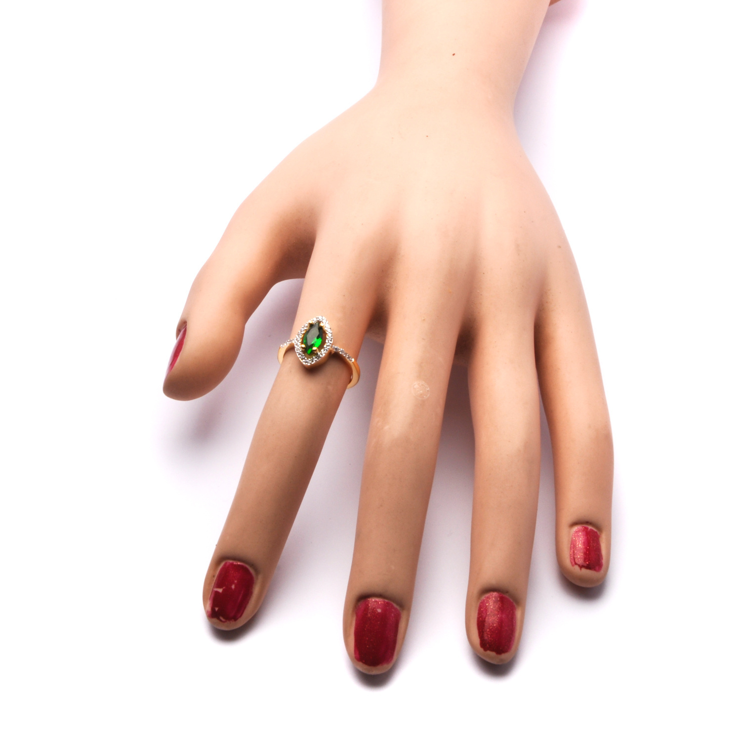Srebrny Pieścionek Pozłacany Szmaragdowy Kamień