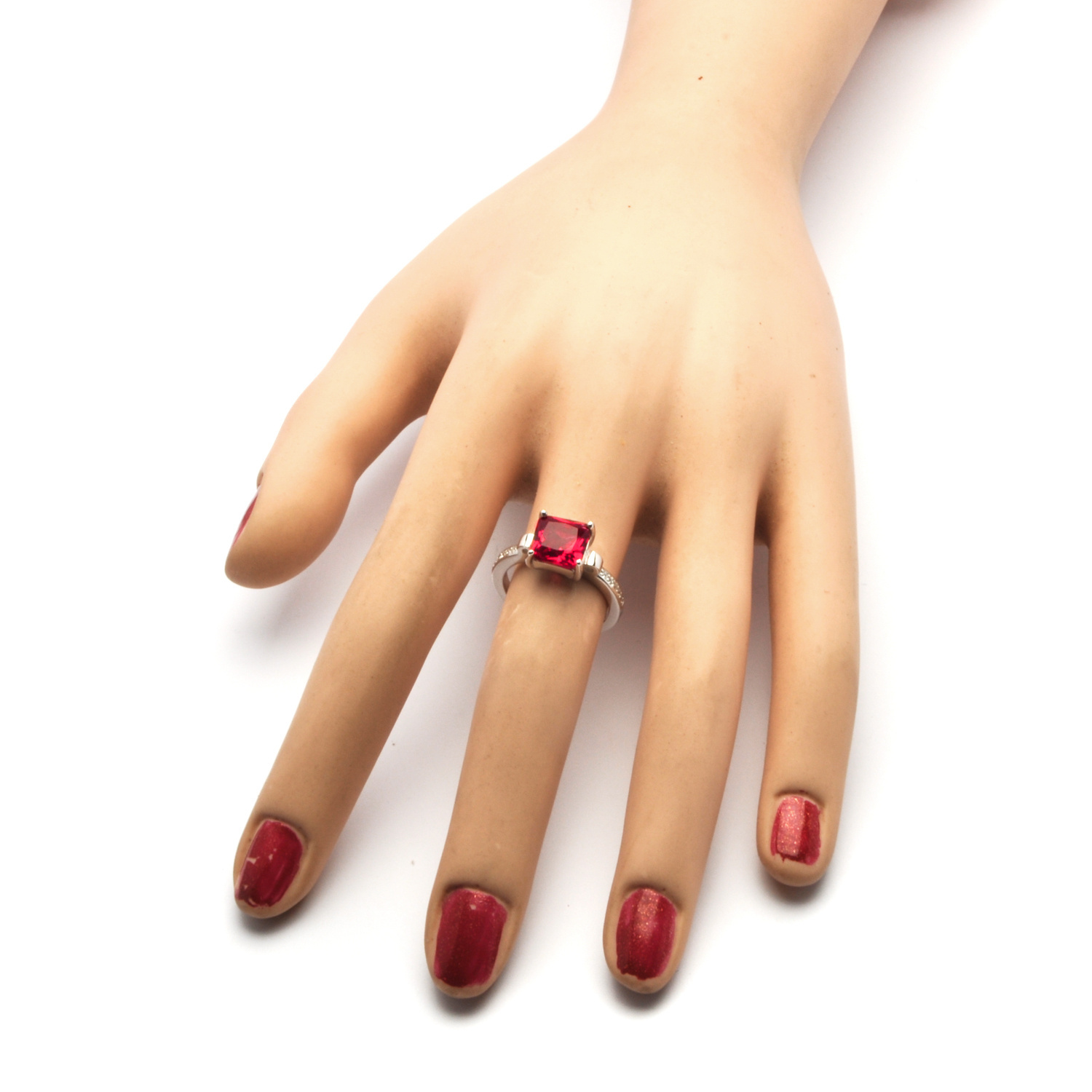 Srebrny Pieścionek z Kwadratową Rubinową Cyrkonią