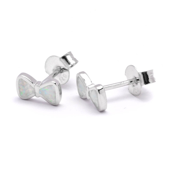 Srebrne Kolczyki Kokarda z Białym Opalem