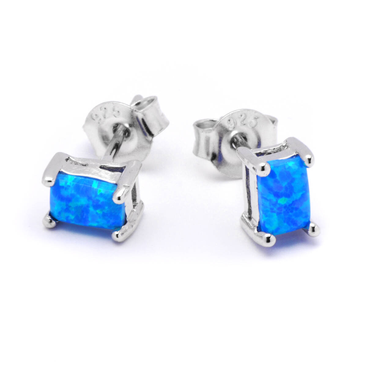 Srebrne Kolczyki Prostokąty z Niebieskim Opalem