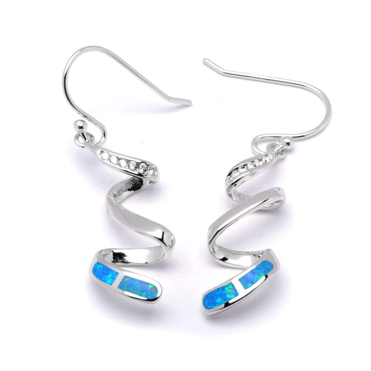 Srebrne Kolczyki Świderki z Niebieskim Opalem