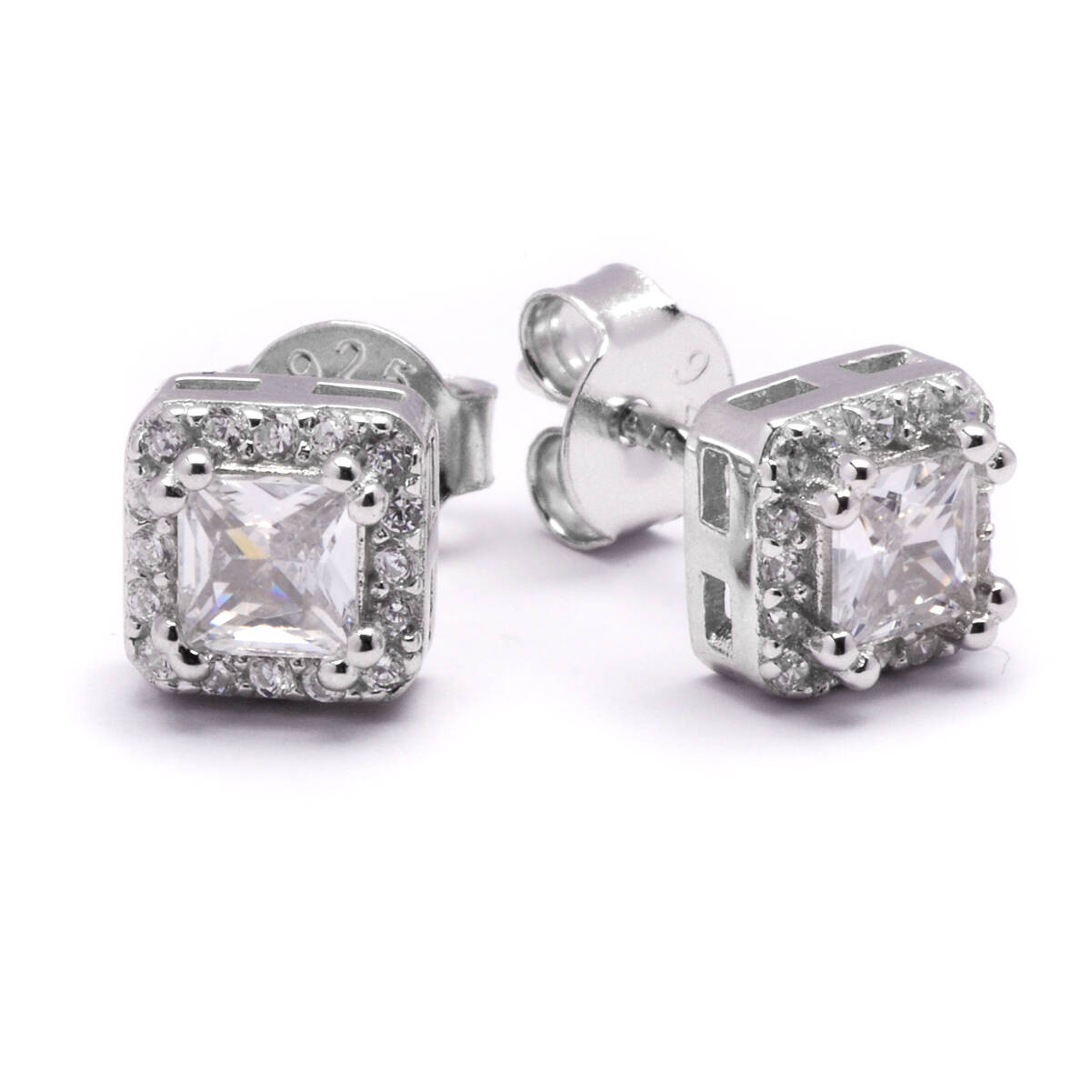 Srebrne Kolczyki Kwadraty Wysadzane Cyrkoniami