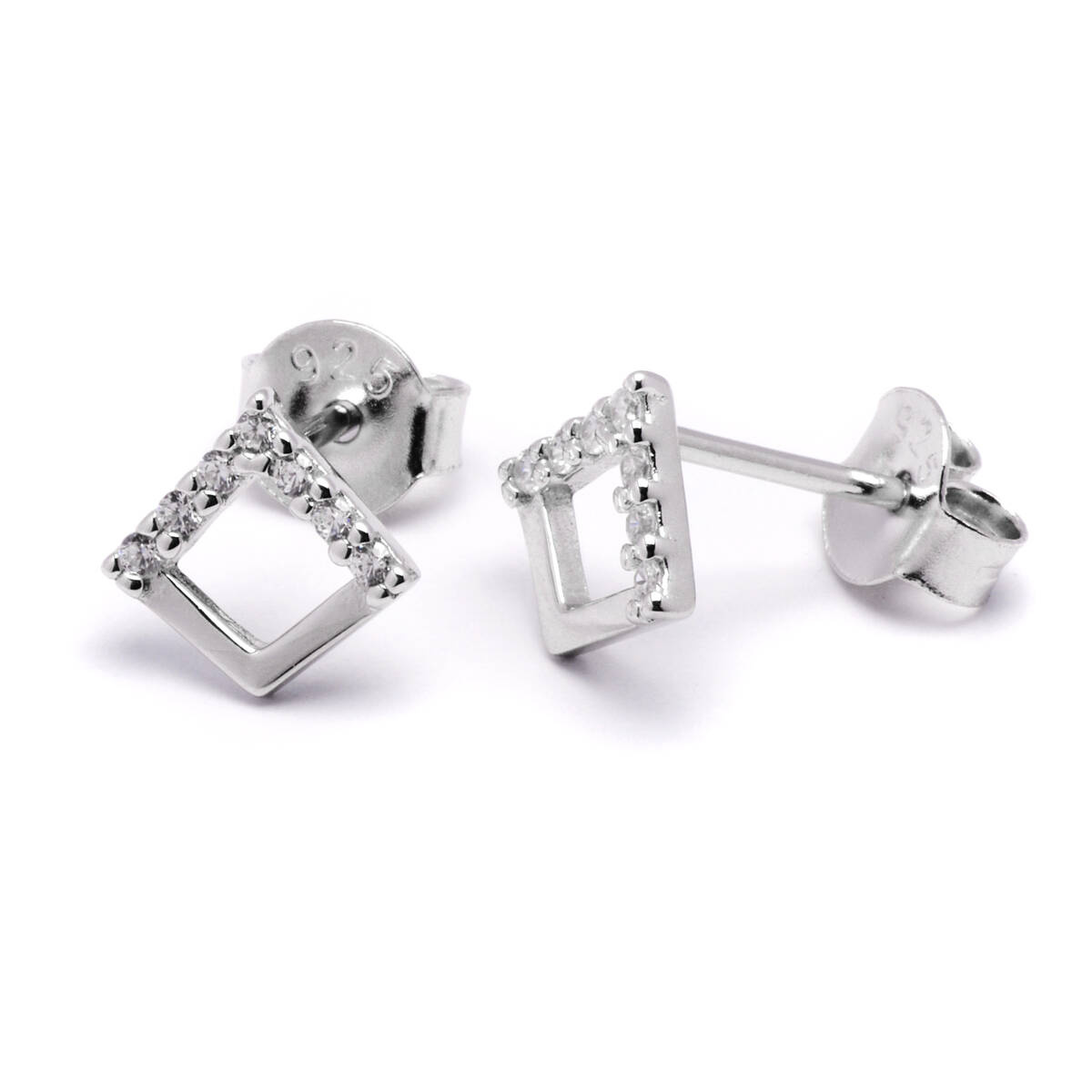 Srebrne Kolczyki Kwadraty Wysadzane Cyrkoniami