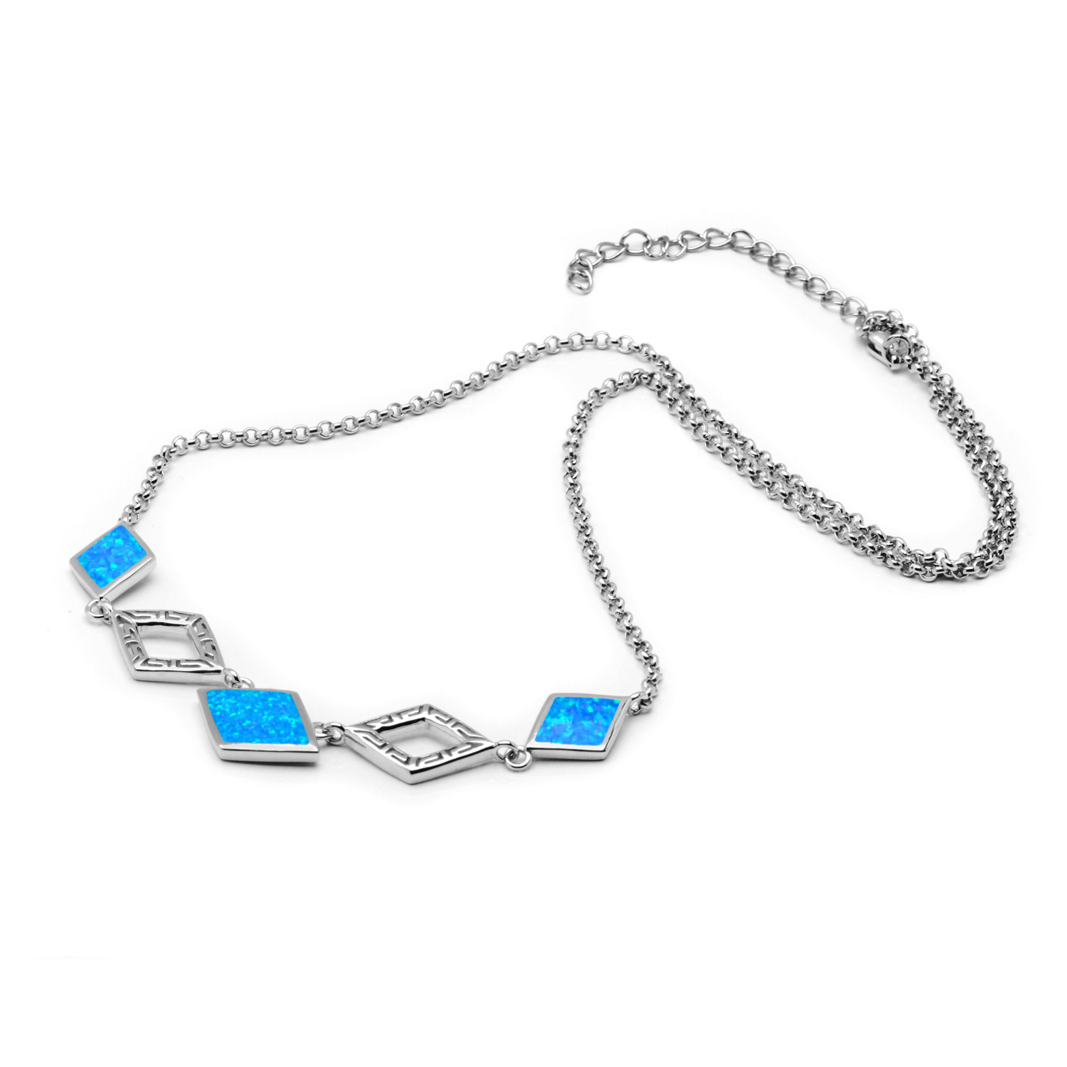 Srebrny Naszyjnik Kolia z Niebieskim Opalem