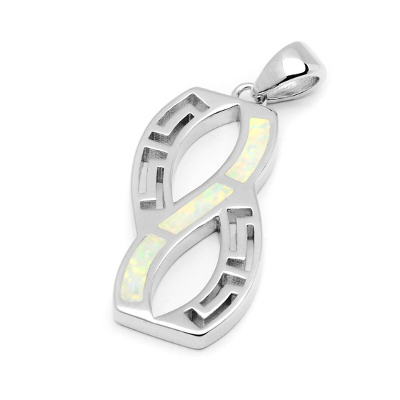 Srebrna Zawieszka Nieskończoność z Białym Opalem