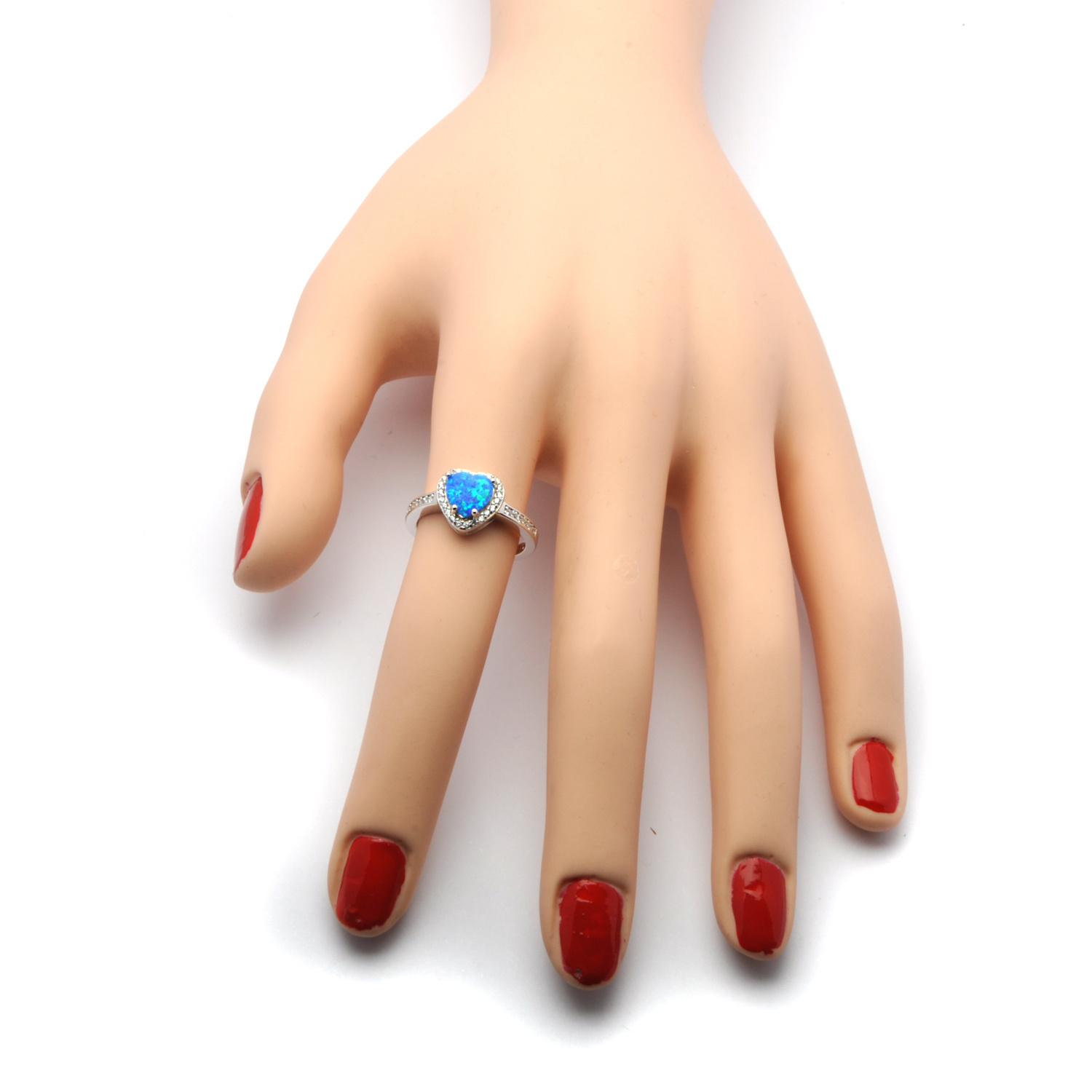 Srebrny Pierścionek Serce z Niebieskim Opalem