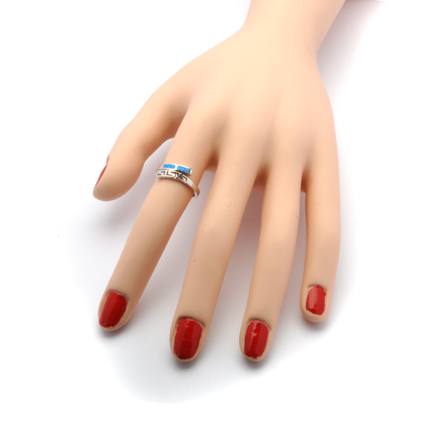 Srebrny Pierścionek z Opalem Wzór Grecki