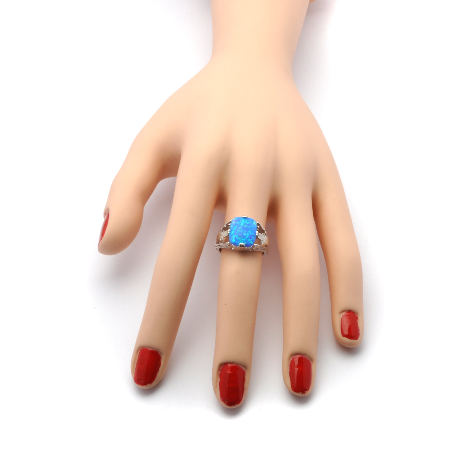 Srebrny Pierścionek z Dużym Niebieskim Opalem