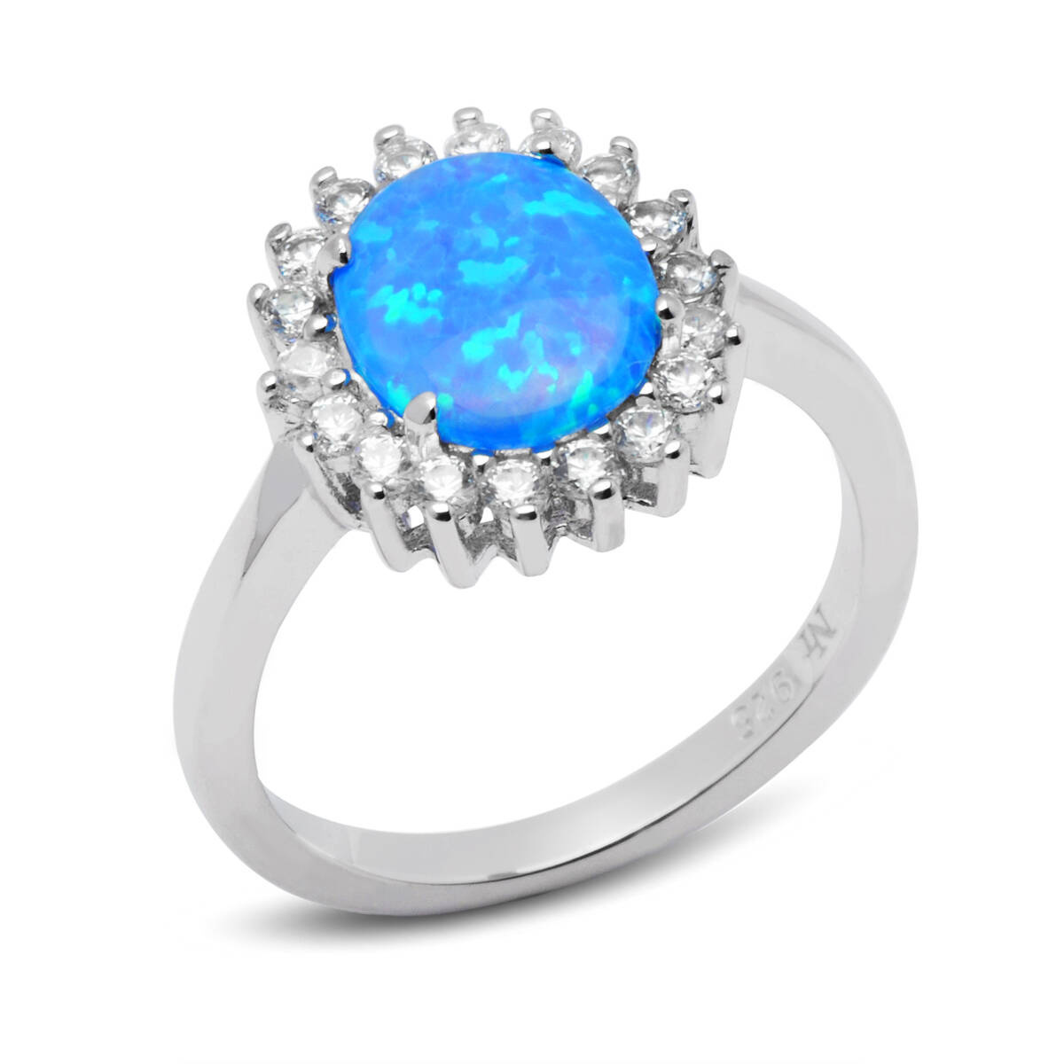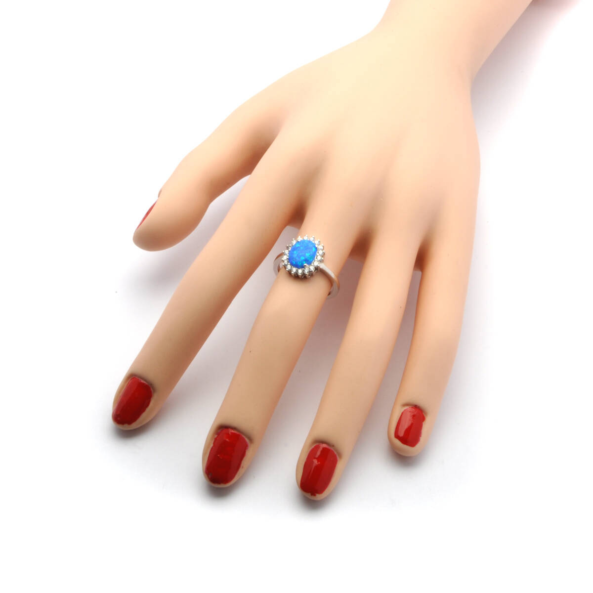 Srebrny Pierścionek Owal z Opalem i Cyrkoniami