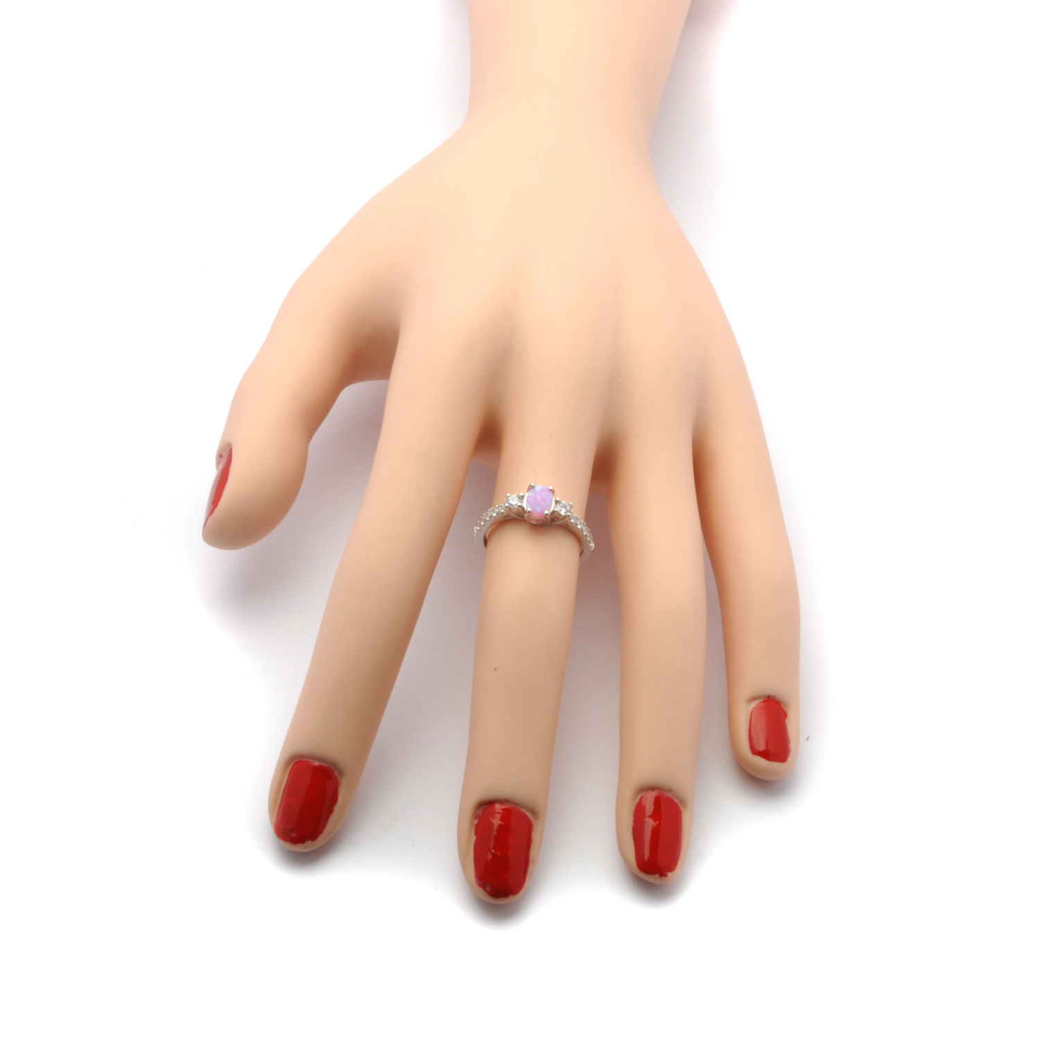 Pierścionek Srebrny z Różowym Opalem i Cyrkoniami