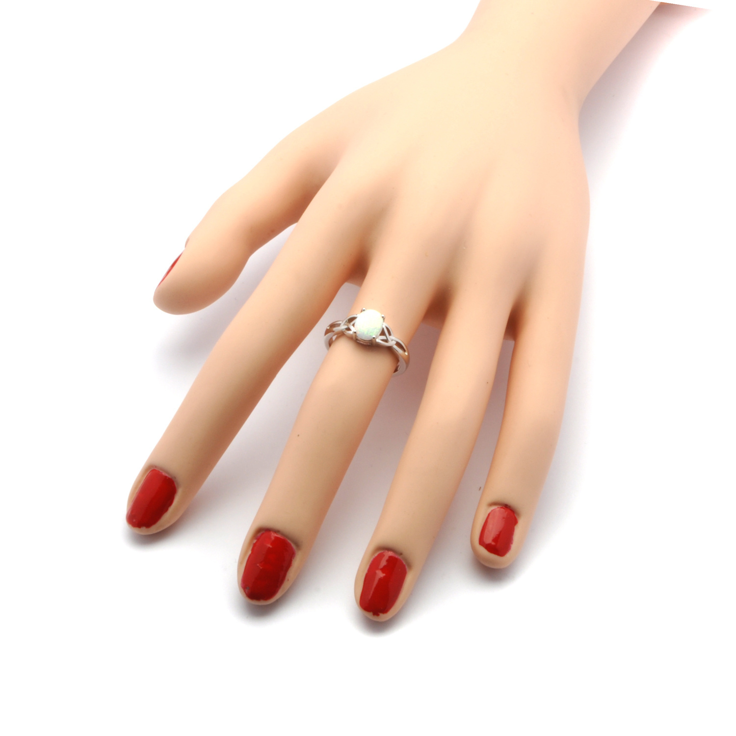 Pierścionek Srebrny z Białym Owalnym Opalem