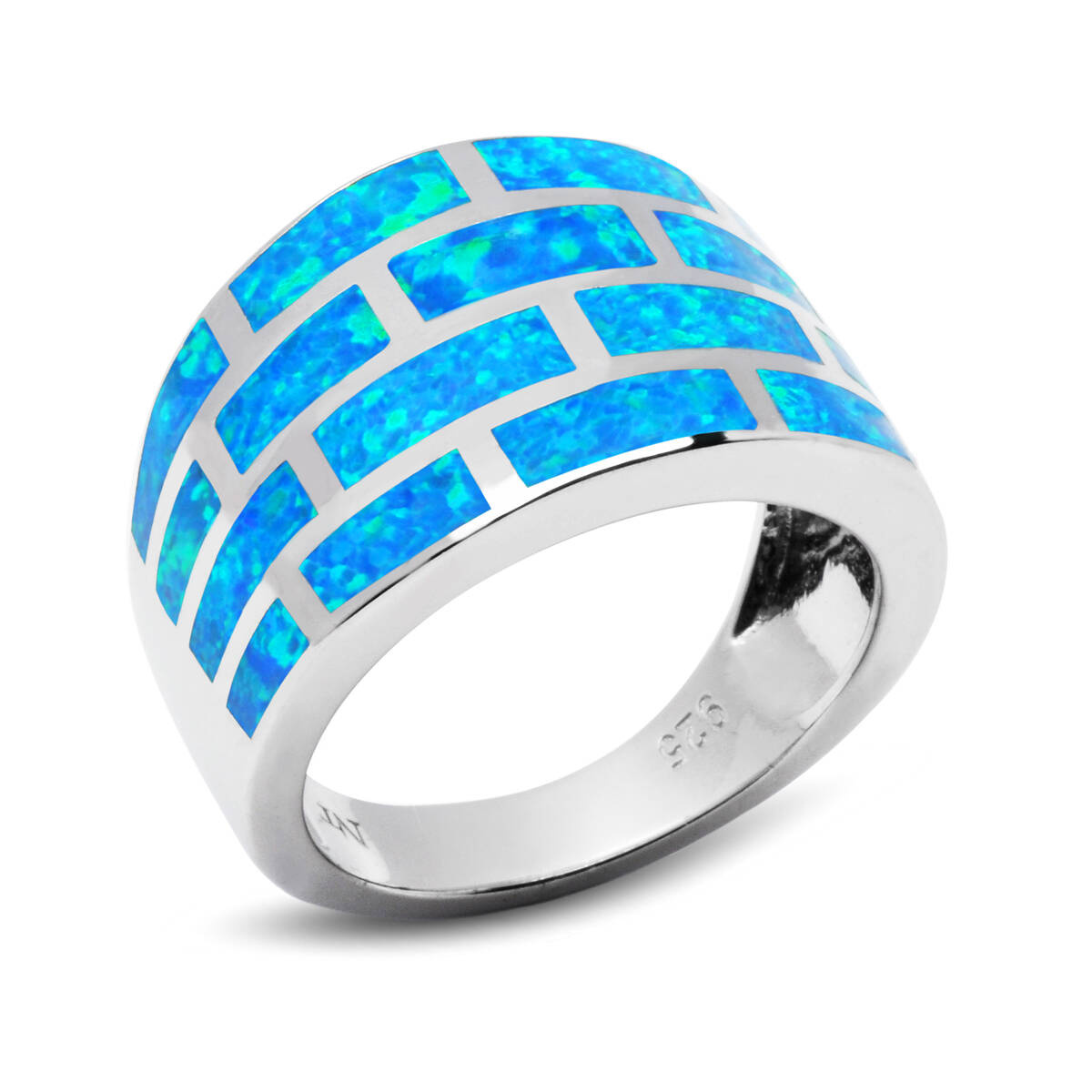 Szeroka Obrączka Srebrna z Niebieskim Opalem