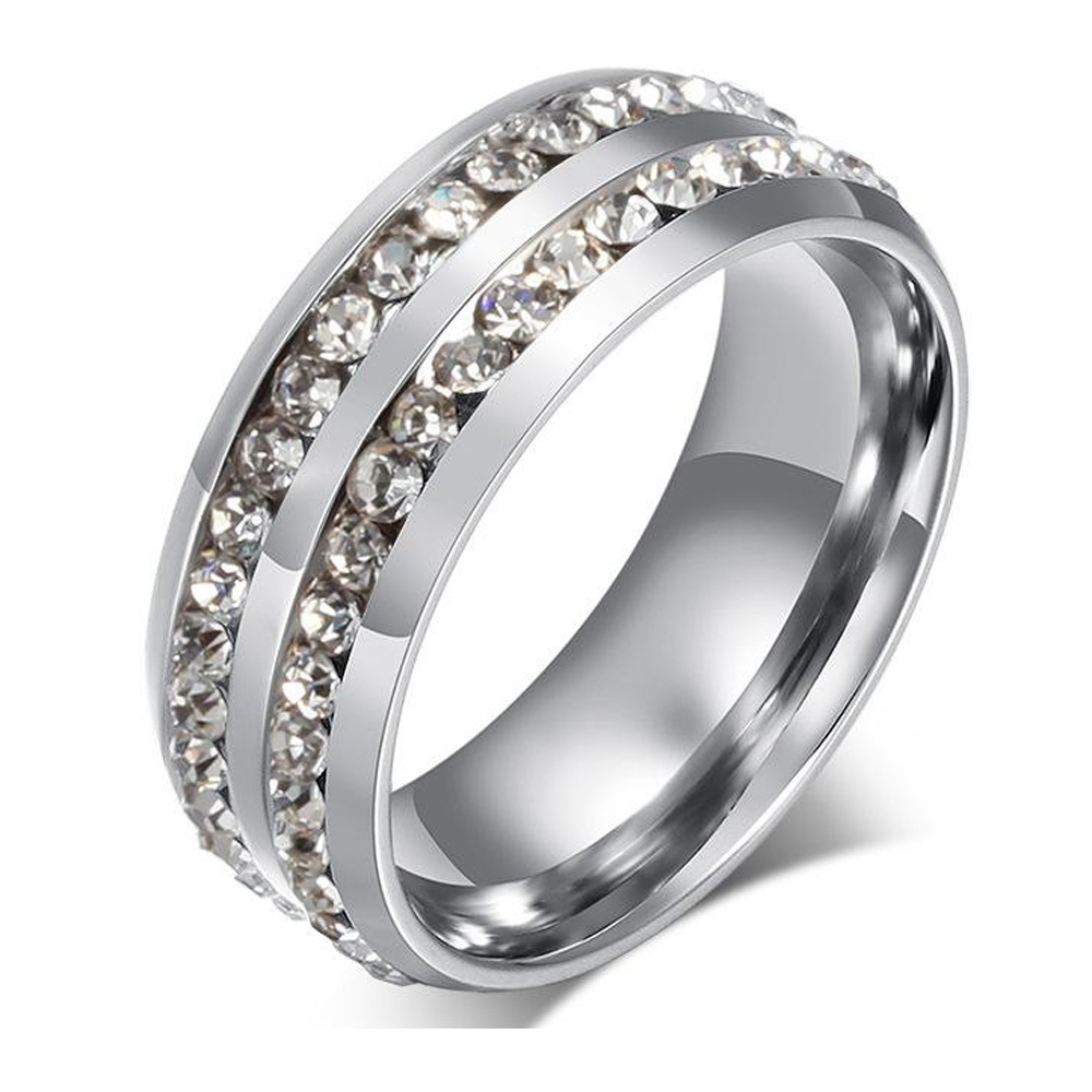 Obrączka ze Stali Szlachetnej 2 Rzędy Cyrkoni
