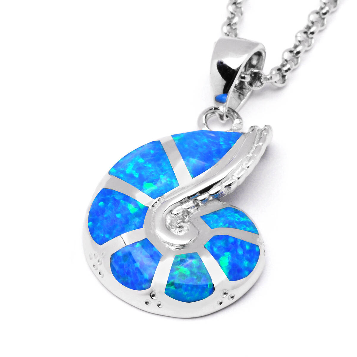 Srebrny Naszyjnik Muszelka z Niebieskim Opalem