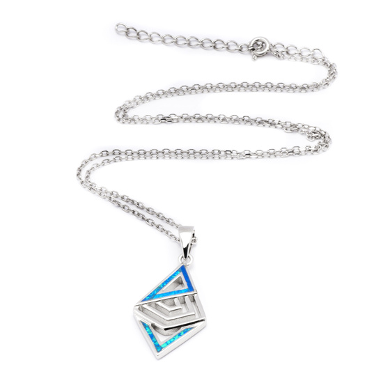Srebrny Naszyjnik Romb z Niebieskim Opalem
