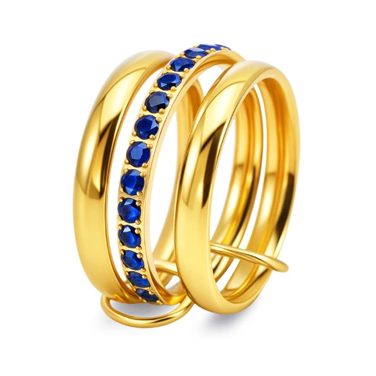 Pierścionek Trzy Obrączki z Szafirowymi Cyrkoniami