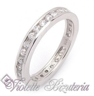 Srebrny pierscionek obrączka białe cyrkonie RS878