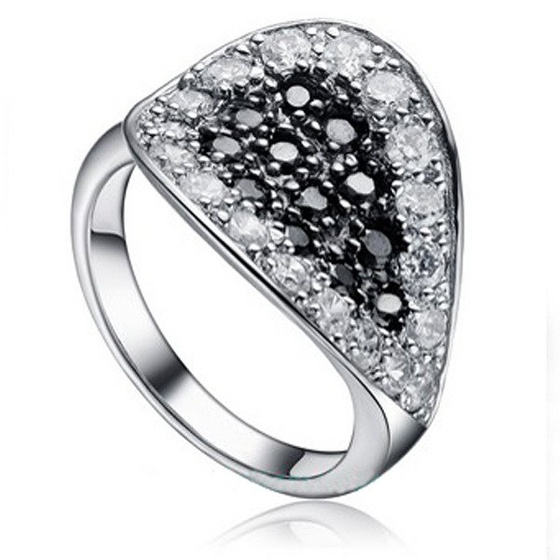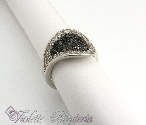 Pierścionek Srebrny z Białymi iCzarnymi Cyrkoniami