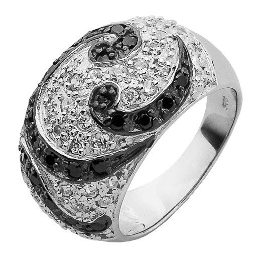 Szeroki Srebrny Pierścionek Białe Czarne Cyrkonie