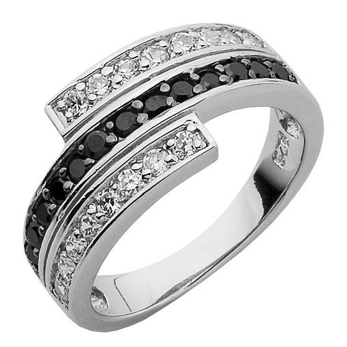 Srebrny Pierścionek z Białymi Czarnymi Cyrkoniami
