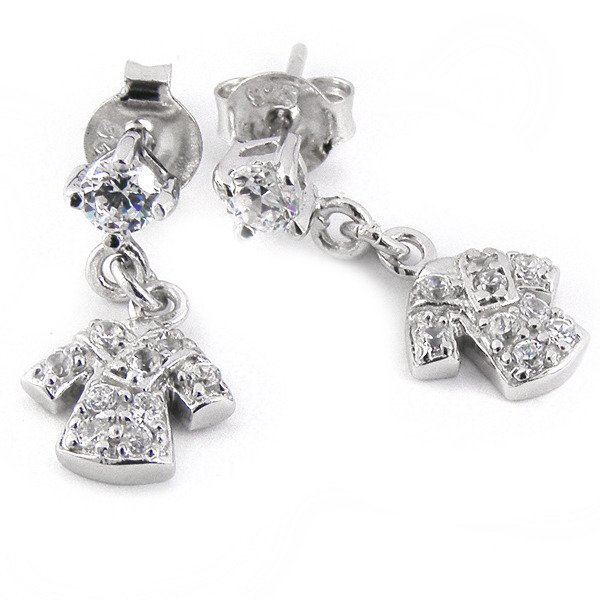 Srebrne Kolczyki Bluzka z Białymi Kamieniami
