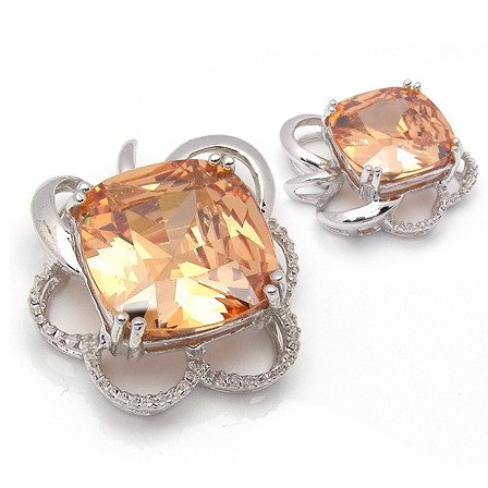 Srebrna Zawieszka Pomarańczowa Cyrkonia